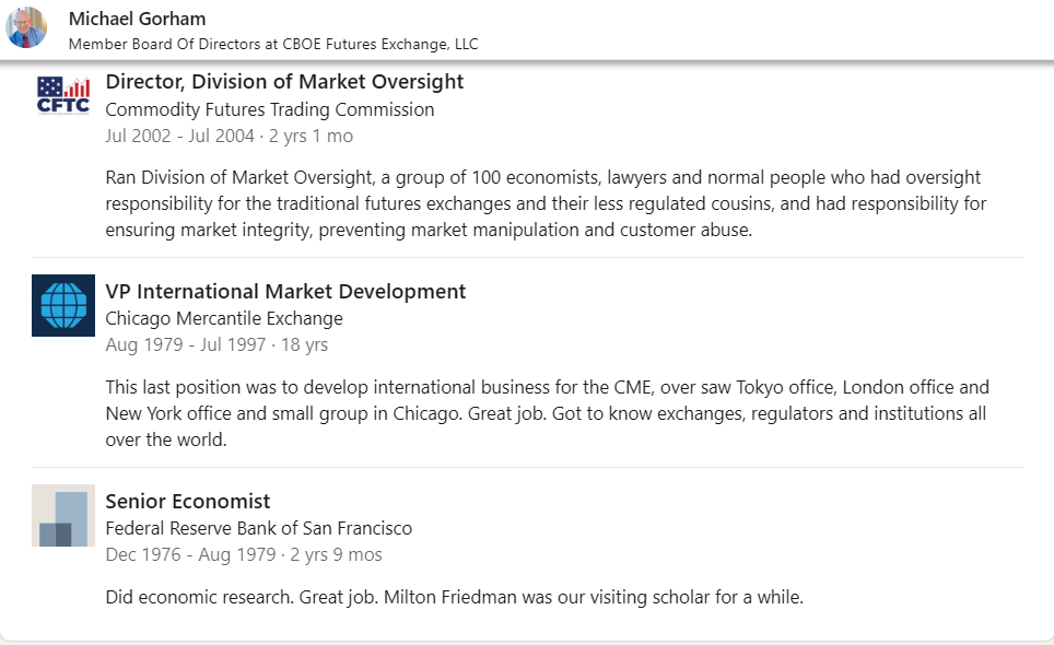 The letter was written by Michael Gorham. Before his two year appointment at the CFTC, Michael worked as VP of International Market Development for the Chicago Mercantile Exchange and was a senior economist for the Federal Reserve Bank of San Francisco.