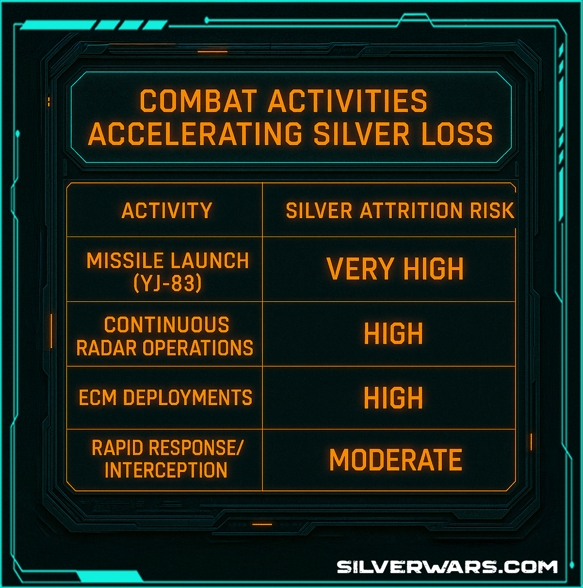 - Constant radar and ECM usage requiring silver-dependent systems.