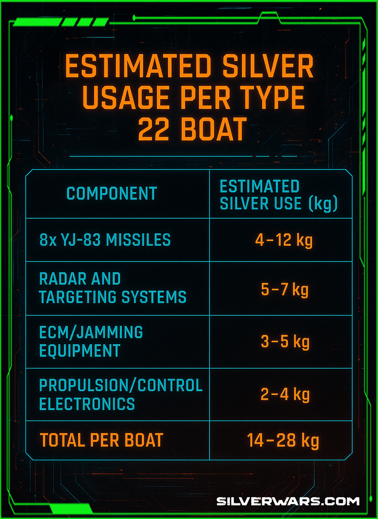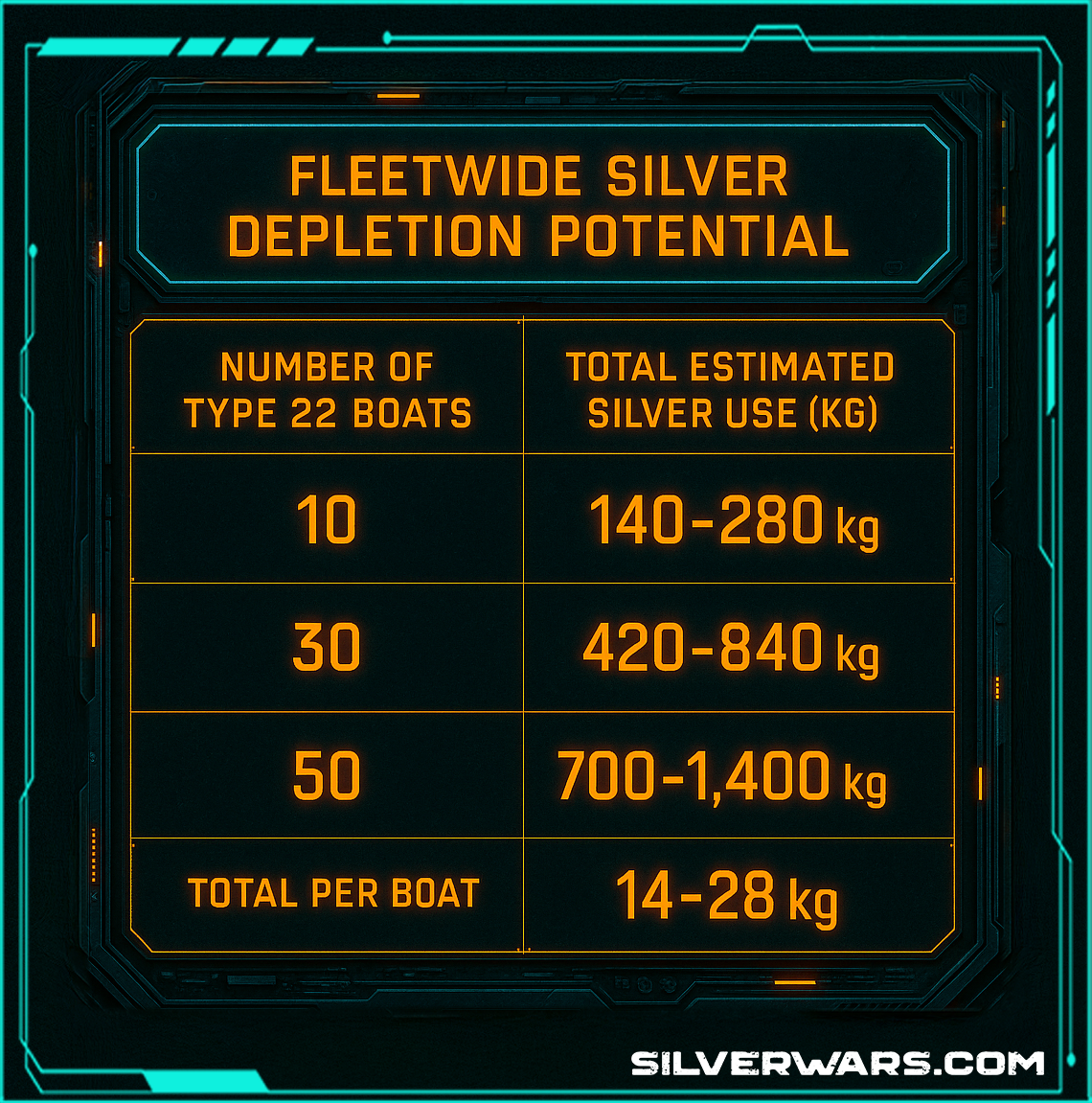 Each Type 22 boat represents a concentrated silver demand across multiple systems. Despite its small size, the technology packed into these vessels makes their silver consumption meaningful.
