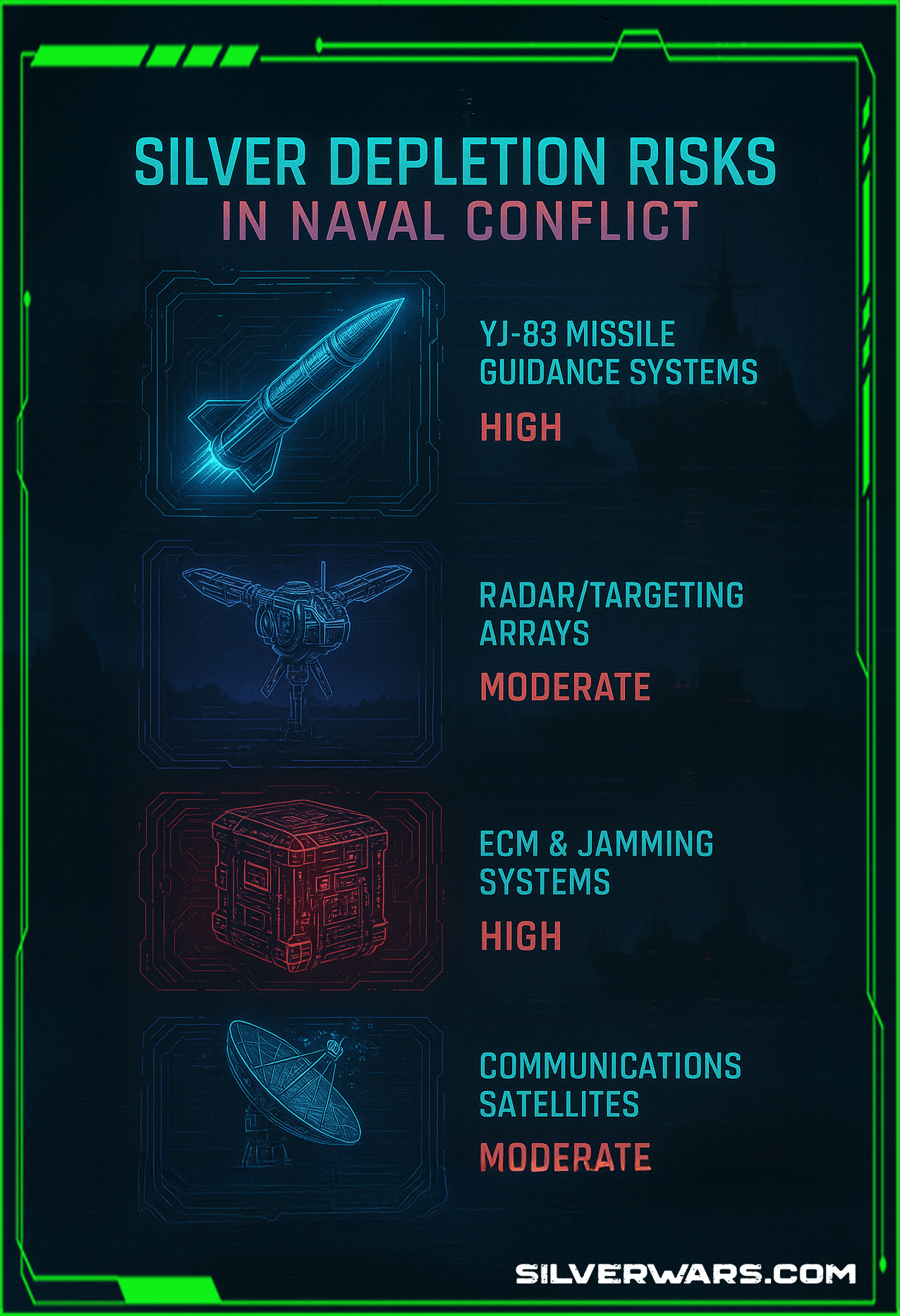 In effect, every hour of high-intensity naval activity isn’t just burning fuel. It’s vaporizing critical silver stock at a rate that global supply chains cannot currently support.