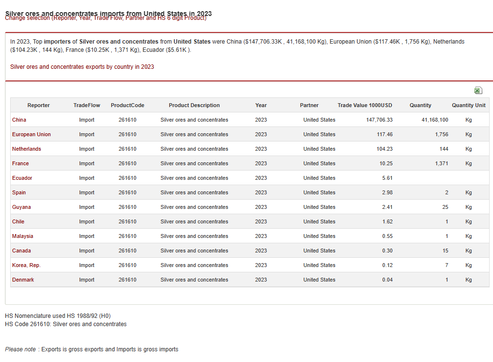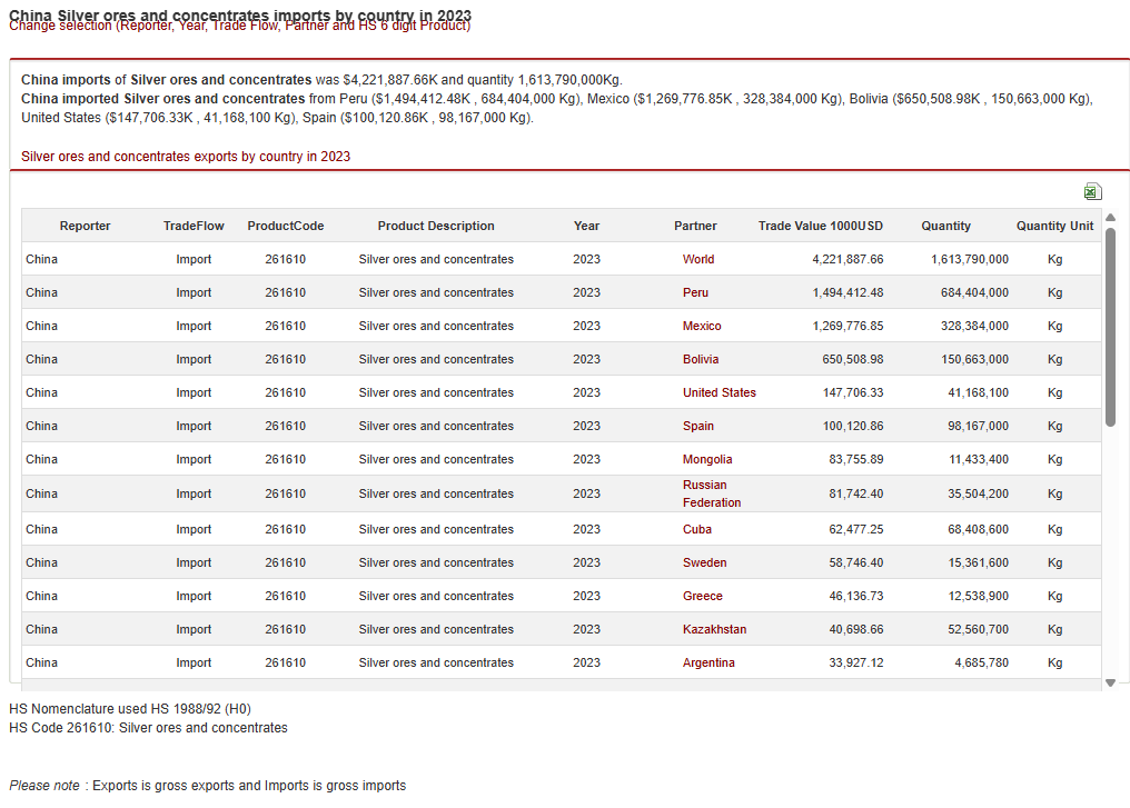 World Bank Comtrade data shows that in 2023, China imported $4.22 billion of unrefined silver ore and concentrates (about 1.61 million tonnes) – nearly the entire global market. One-third came from Peru ($1.49B), another third from Mexico ($1.27B), with Bolivia ($0.65B) a key supplier. Effectively, China now controls the upstream supply by paying premiums to secure silver at the source.