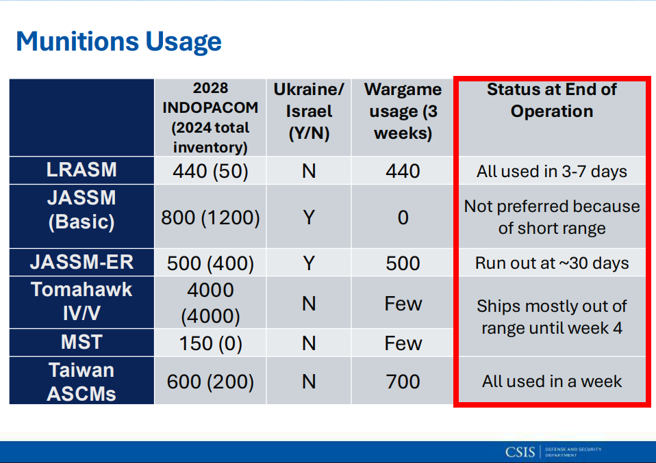 In late‑2024 congressional wargaming concluded that in a high‑end fight with China, U.S. stocks of long‑range anti‑ship, cruise missiles, and guided bombs would be “nearly expended” within a month—and some would be gone in days. That’s not a spicy hot‑take; it’s a sober readout.