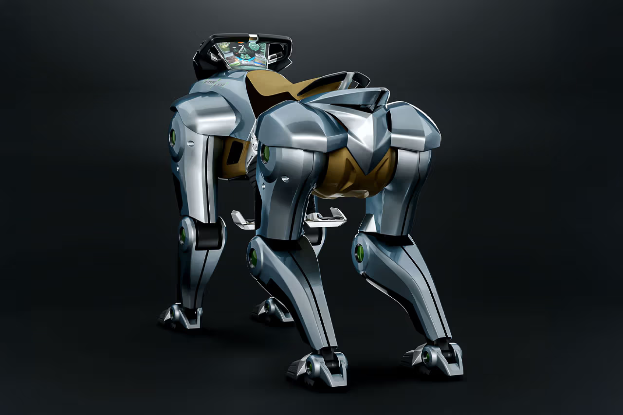 Built by Kawasaki Heavy Industries (yes, the motorcycle people), Corleo is a four-legged quadruped robot designed for personal transport. It uses hydrogen as its energy source and leverages AI to adapt to its rider’s weight, manage terrain, and optimize speed.