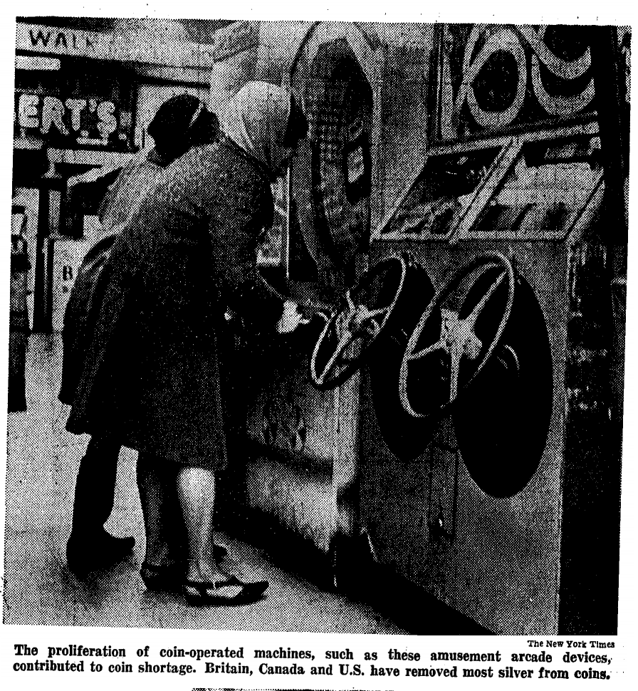 Demand for coins has grown with the vending-machine industry– change may lie out of circulation in a machine for weeks– and with the general growth of retail activity.