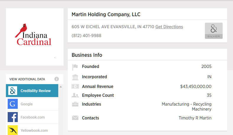 Martin Holding Company, LLC has a creation date of April 2005. It assumed the name Indiana Cardinal in Jan 2012 according to public business filings.