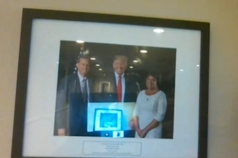 Jon (0:48-1:18): Wait– hold on– how do I get this? I'm being a boomer right now. Look at this boomer shit. Can you see that dumb little warning I keep getting? This is the– uh– see if I can go into the upper room– that's the [shows Indiana Cardinal sign], and this was--uh– so– can you see Trump there?