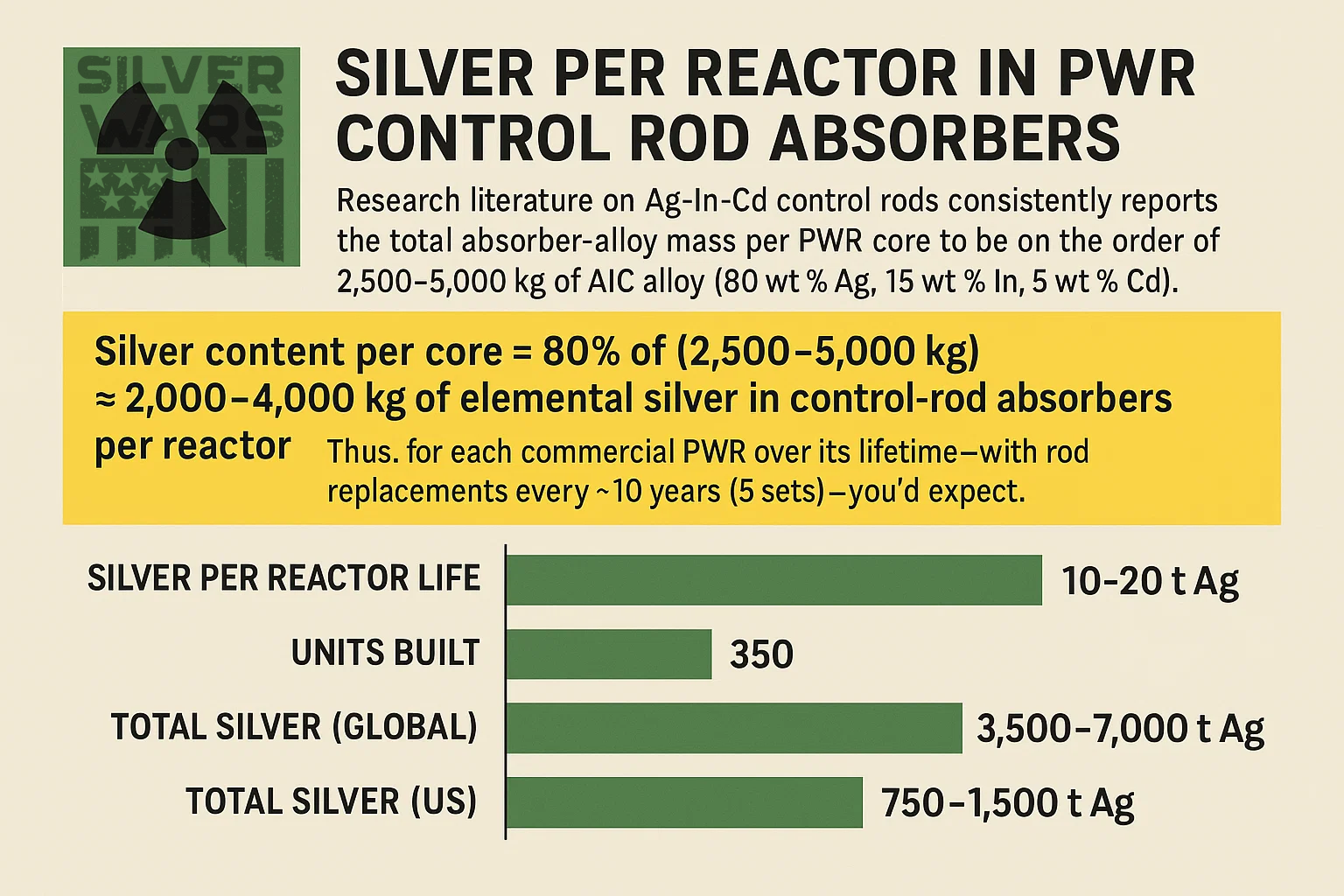 That might be the only silver lining here because civilian PWR programs have inadvertently created a silver-waste scandal, consuming millions of kilograms of a vital strategic metal. The solution is clear: follow naval best practices and pivot to hafnium-based control rods—preserving silver for critical technologies and defending our nation’s energy infrastructure.