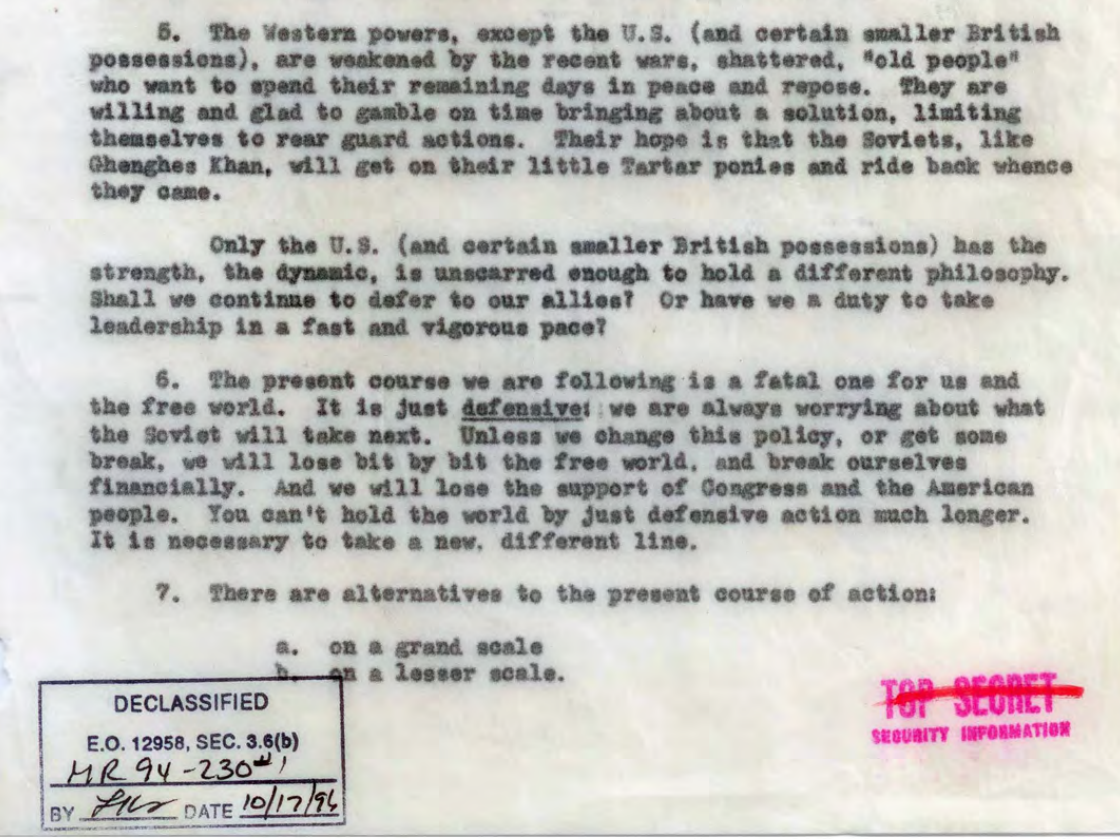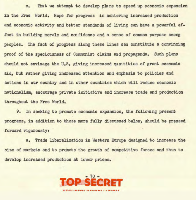 The intent was not humanitarian. It was strategic. By strengthening foreign economies and political systems, the United States could extend its influence far beyond its own borders without direct control. The documents are explicit in this logic, calling for expansive foreign assistance tied directly to both military capability and economic alignment. At the same time, this approach did not exclude pressure. It included ongoing efforts to exploit vulnerabilities within opposing systems, reducing their ability to compete without triggering open conflict. Even at its most restrained, this was not passive policy. It was continuous, low-visibility intervention.