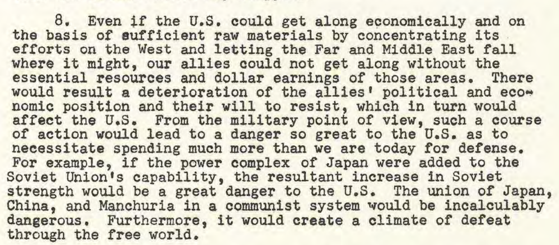 This concern is reflected clearly in the Solarium materials, which emphasize that time would only favor the United States if deliberate action was taken to build and sustain power. As one summary states, the strategy assumes success only "provided that we build up and maintain... United States military strength". That conditional phrasing reveals the underlying reality. Without continuous intervention, time was not an ally.