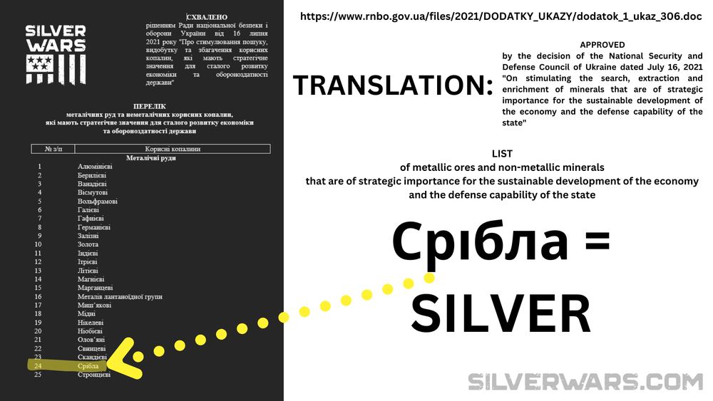 Kyiv, for the its part, has formal lists of "strategic" and "critical" minerals and is moving to auction or PSA key deposits (for example, graphite and lithium). Whether or not silver sits on the current short list, the defense importance is obvious given its roles above. The key point: Ukraine has created a legal pathway to develop these resources under Western alignment– not Russia exploitation.