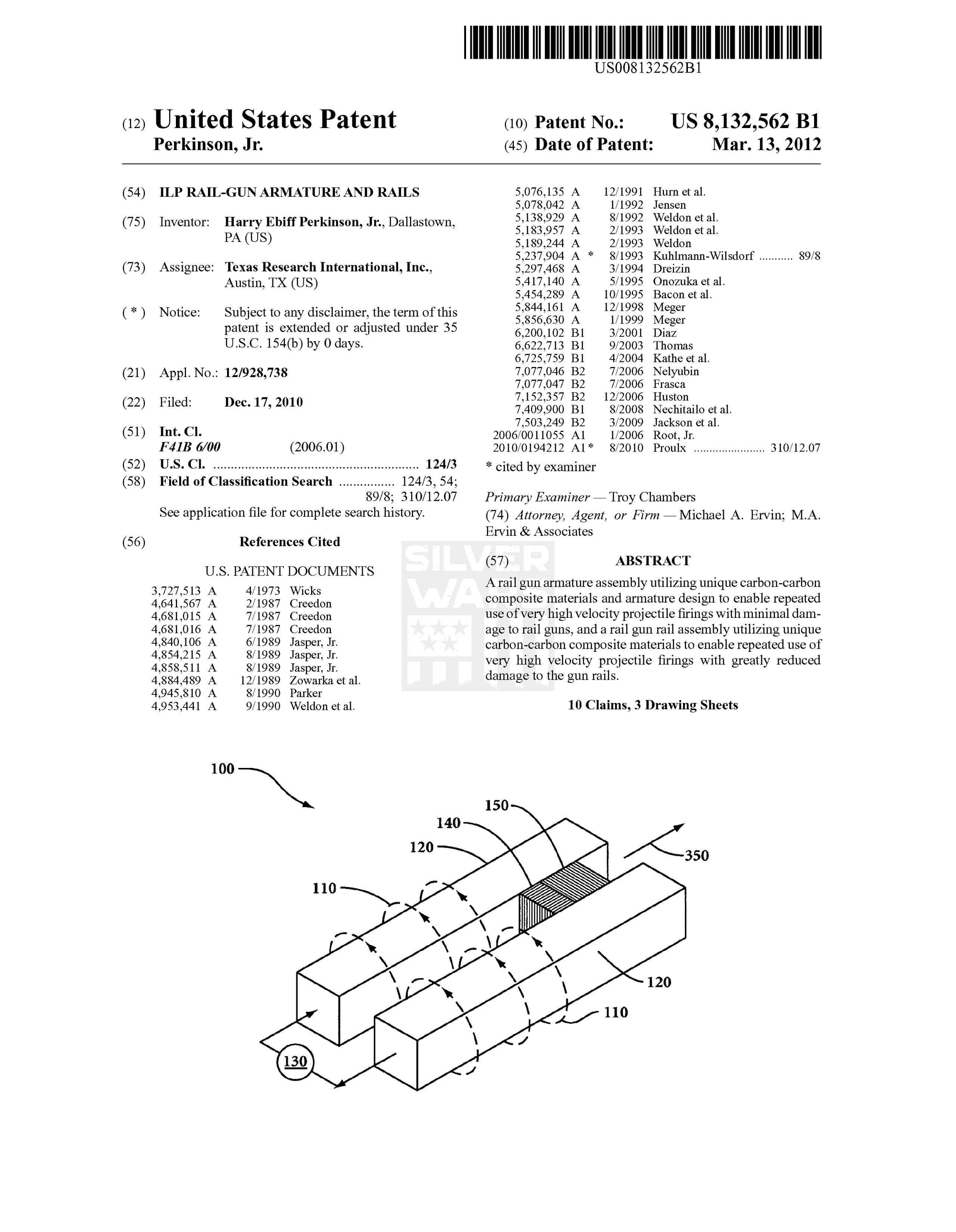 In the shadows of defense contracts and obscure patents lies a startling reality. Silver isn’t just industrial filler anymore. It’s the functional core of one of the most advanced weapon systems ever designed. In a 2012 patent (US8132562B1), we find an electromagnetic railgun armature and rail system that utilizes a combination of carbon-carbon composite structures and silver-based conductors to handle the unprecedented electrical and thermal loads of launching a projectile at Mach speeds.