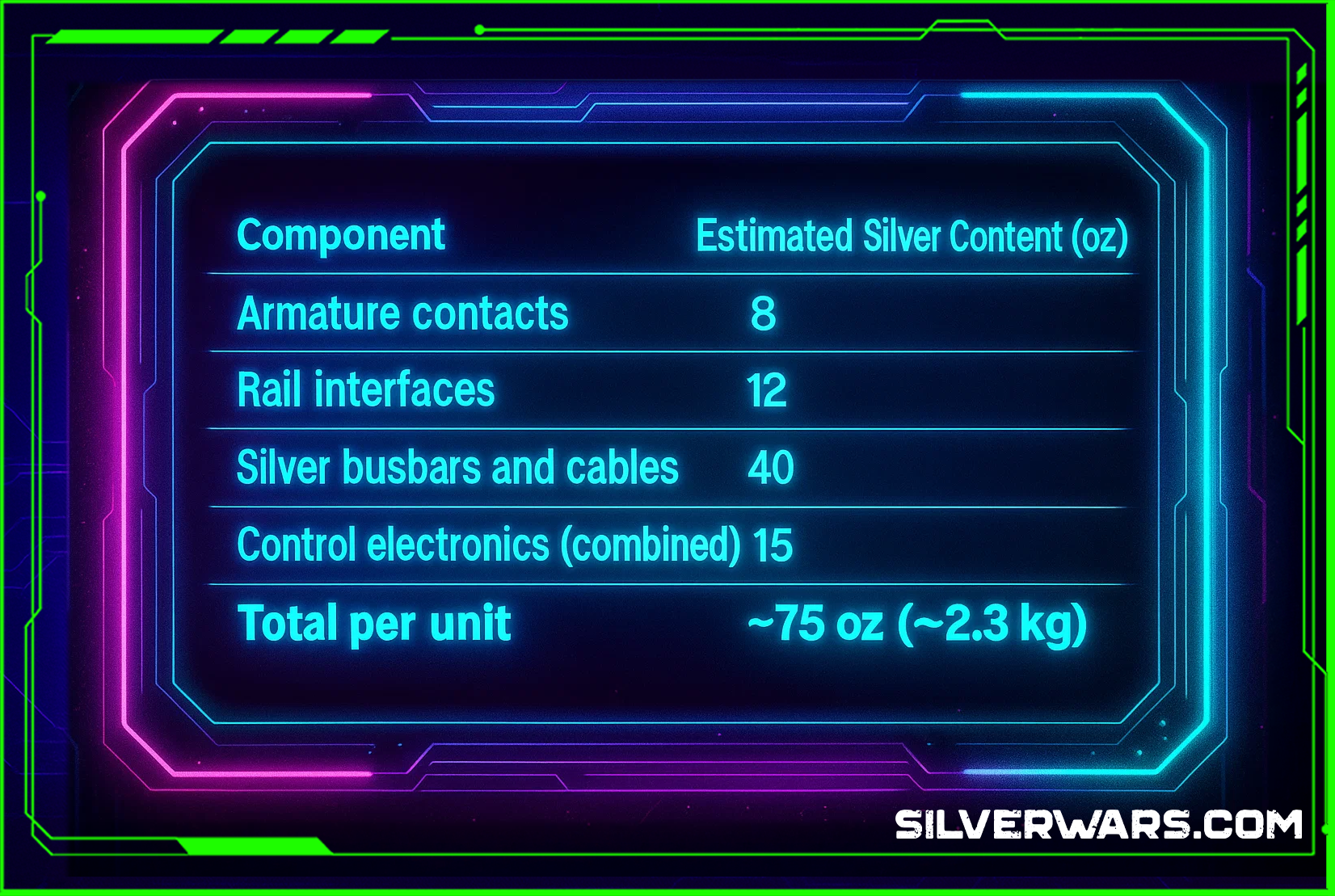 Now forecast a dozen railgun platforms entering production, with 75 ounces per unit minimum. That’s thousands of ounces in just the prototyping phase. Once operational, they'll chew through silver with every firing cycle.