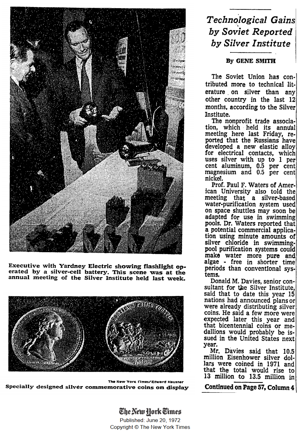 The significance of this report is the early association of the Silver Institute with a military industrial complex company – Yardney.
