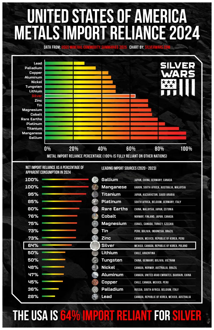 Mexico is rich in silver deposits and in 2024 accounted for over 25% of global production of silver and 44% of US demand per the USGS. It will be interesting to see if Mexico is able to produce enough silver for its needs while supplying the hunger of the US.