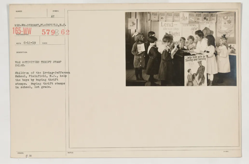 The U.S. “Schools at War” and War Savings Stamp campaigns of the World Wars mobilized millions of children and ordinary citizens to buy low-denomination war stamps (10¢, 25¢, etc.) and glue them into booklets. Once a booklet was filed (for example, 75 stamps at $0.10 = $7.50 face value), it could be exchanged for a $10 or $25 War Bond.