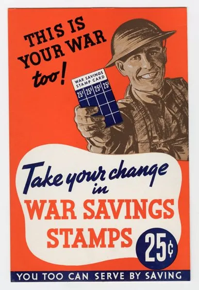 The campaign enlisted celebrities and pop culture to amplify its message. Hollywood and music stars lent their names and images to war finance drives, making stamps seem glamorous and fun. Frank Sinatra, Bob Hope, and others appeared in movie shorts and radio spots urging families to buy savings stamps. Comic book heroes and cartoon characters likewise appeared on posters and in school assemblies to recruit stamp sales. These tactics echoed earlier British efforts: in WW1, Britain bundled bonus pictorial stamps with each purchase as children could paste heroic images (Victoria Cross winners, battleships, etc.) in scrapbooks – essentially the era’s “trading cards” – turning saving into a collectible hobby.